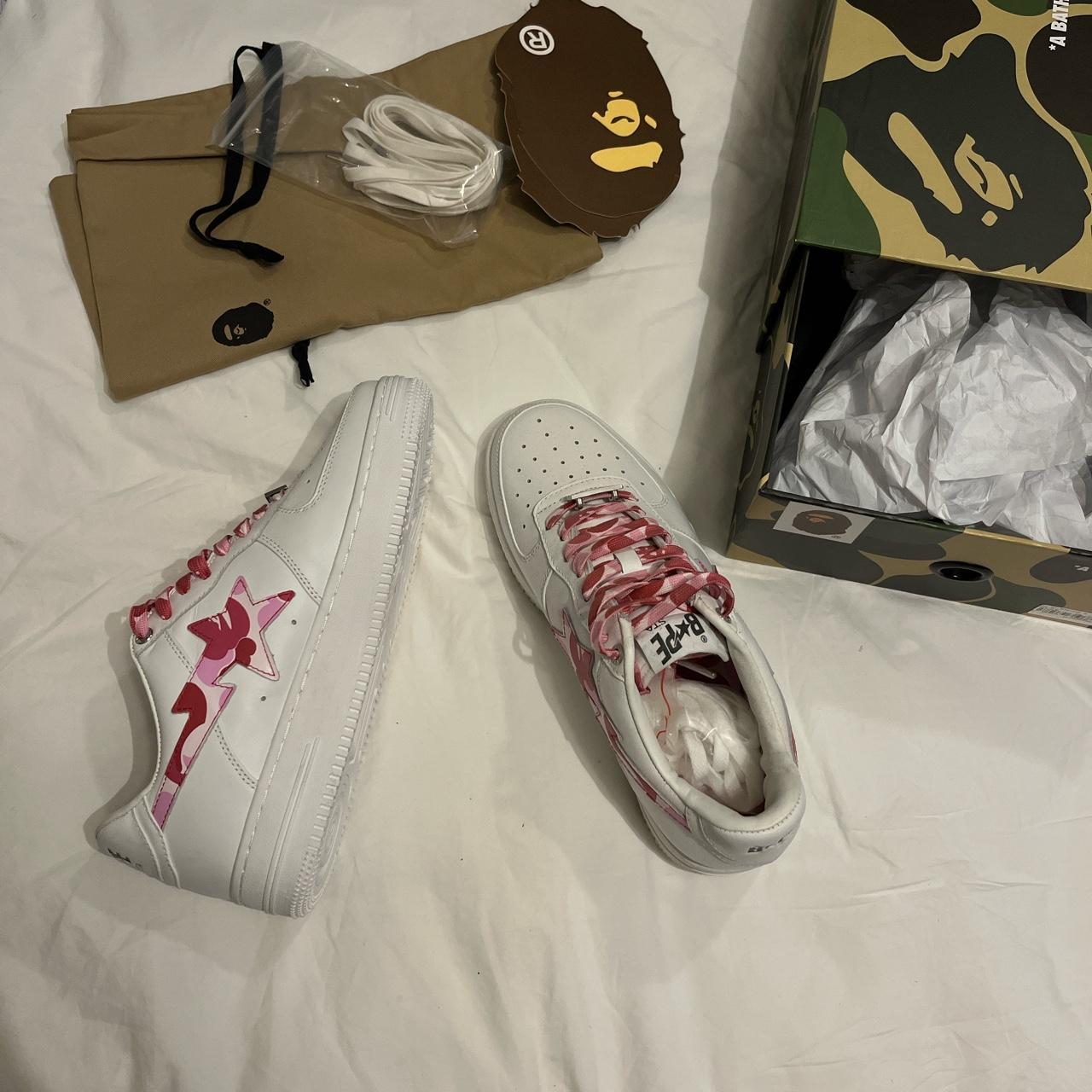 Bapesta all white pink tick White af1 on steroids - Depop bapesta af1 white