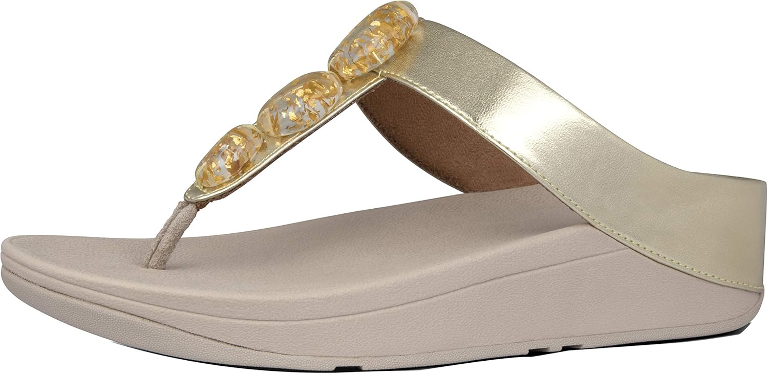 Fitflop Women's Fino Metallic Fleck Stone Toe-thongs Open Sandals, Silver Platino 675, 42 EU fitflop fino blossom toe thong