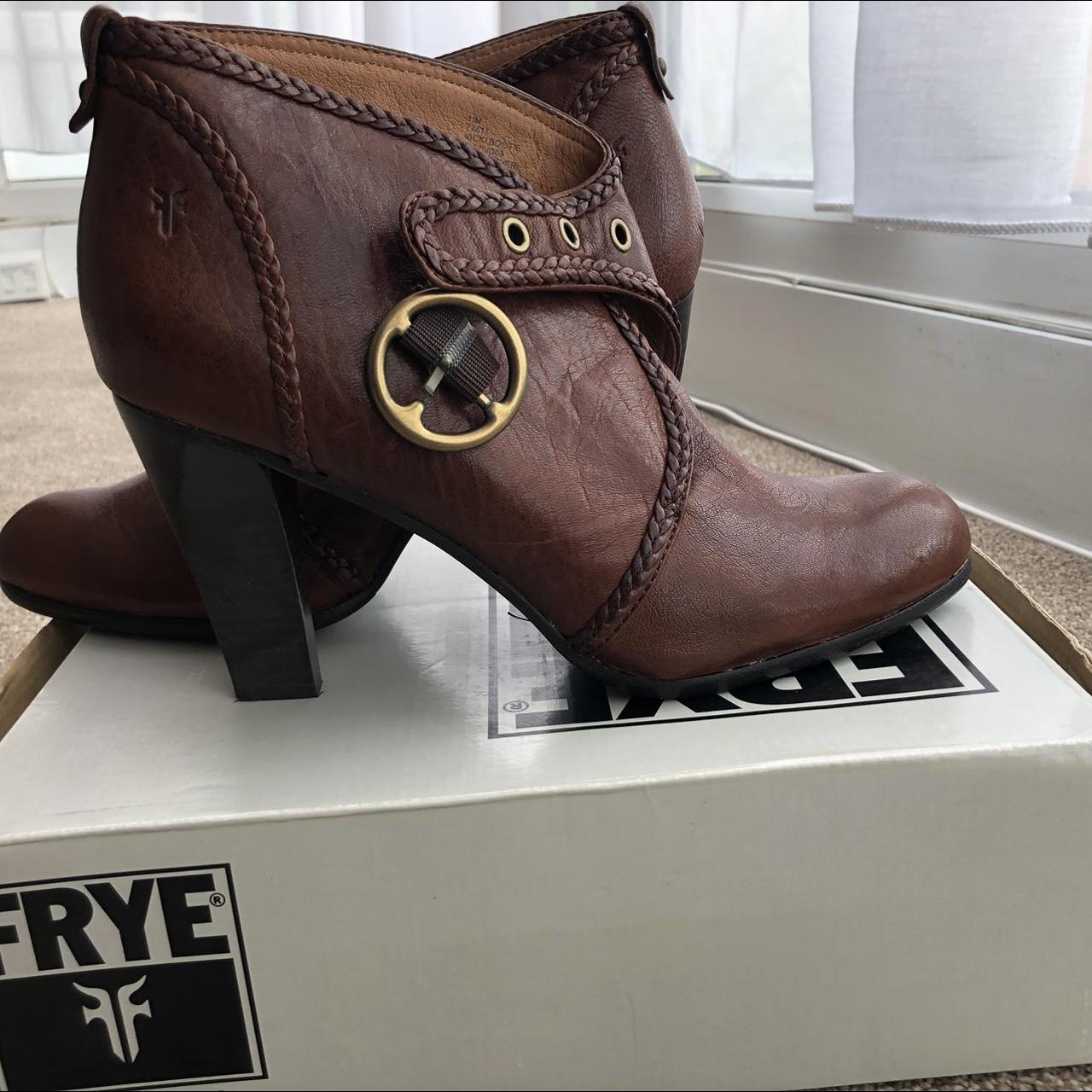FRYE Vicky Braided Tan Leather Ankle Boot - Depop frye vicky leather booties