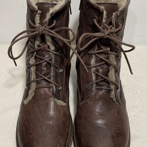 Frye | Shoes | Frye Valerie Brown Leather Shearling Lined Lace Up Combat Boots 9 B | Poshmark frye valerie shearling boots