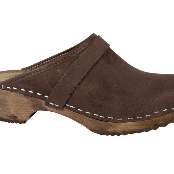 Classic Clogs in Black Oiled Nubuck on Brown Base | Lotta from Stockholm nubuck clogs