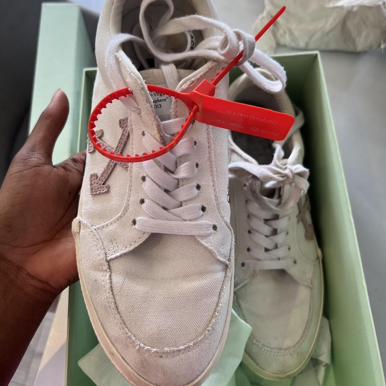 Off white low vulcanized trainers Signs of wear can - Depop womens off white trainers