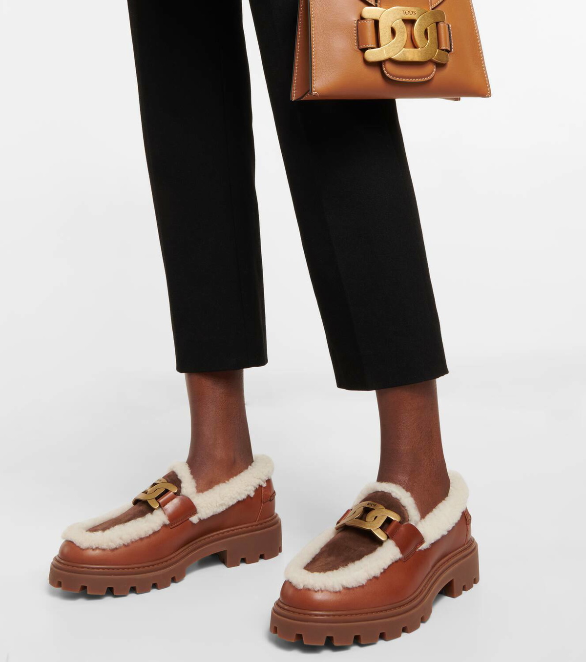 Tod's Kate leather and shearling loafers Tod's tod's kate leather loafers