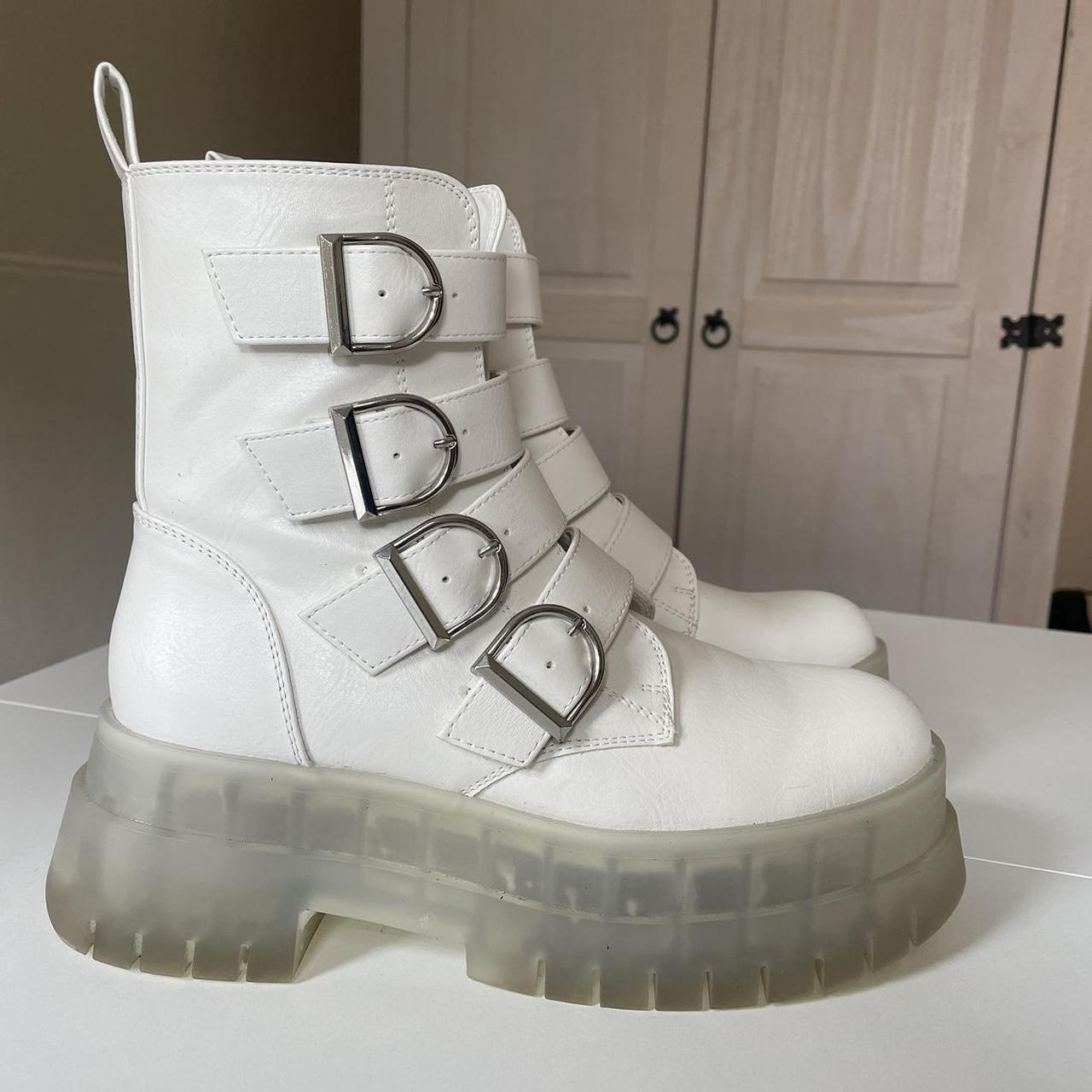 Bershka Chunky Platform Boots in White Free - Depop chunky boots bershka