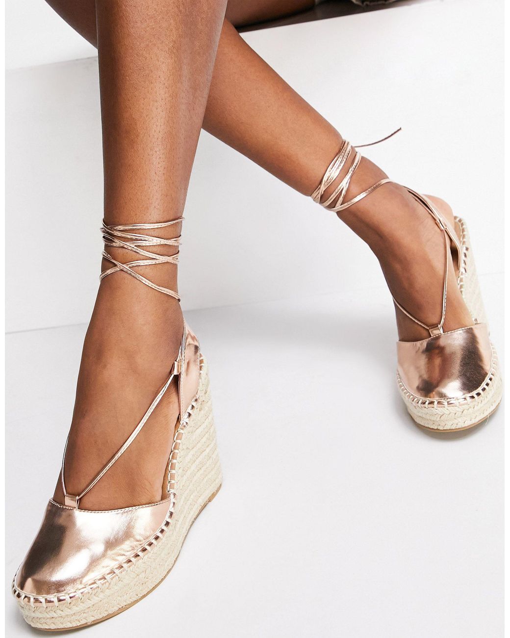 ASOS Tammy Tie Leg Espadrille Wedges in Metallic | Lyst asos design topic espadrille wedges in beige