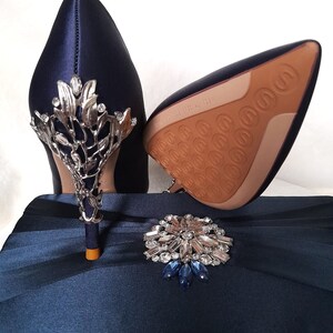 Navy Blue Shoe,satin Navy Blue Wedding Shoe,stone Navy Blue Shoe, Bridal Shoe, Satin Heel,navy