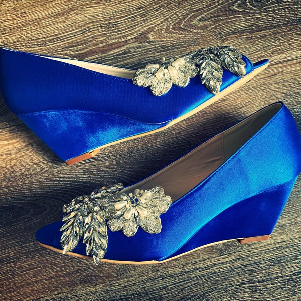 Royal Blue, Black, & Silver Wedges | Silver wedges, Wedges, Royal blue