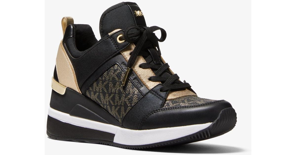 Michael Kors Georgie Glitter Leather Wedge Trainer Sneakers | Dillard's michael michael kors georgie embossed leather trainer