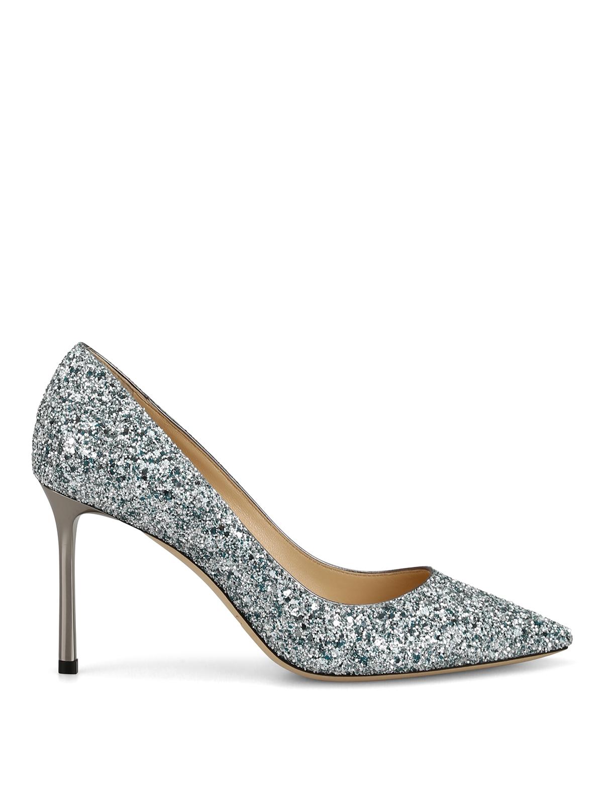 Womens Jimmy Choo silver Romy 85 Glitter Pumps | Harrods UK romy 85 glitter
