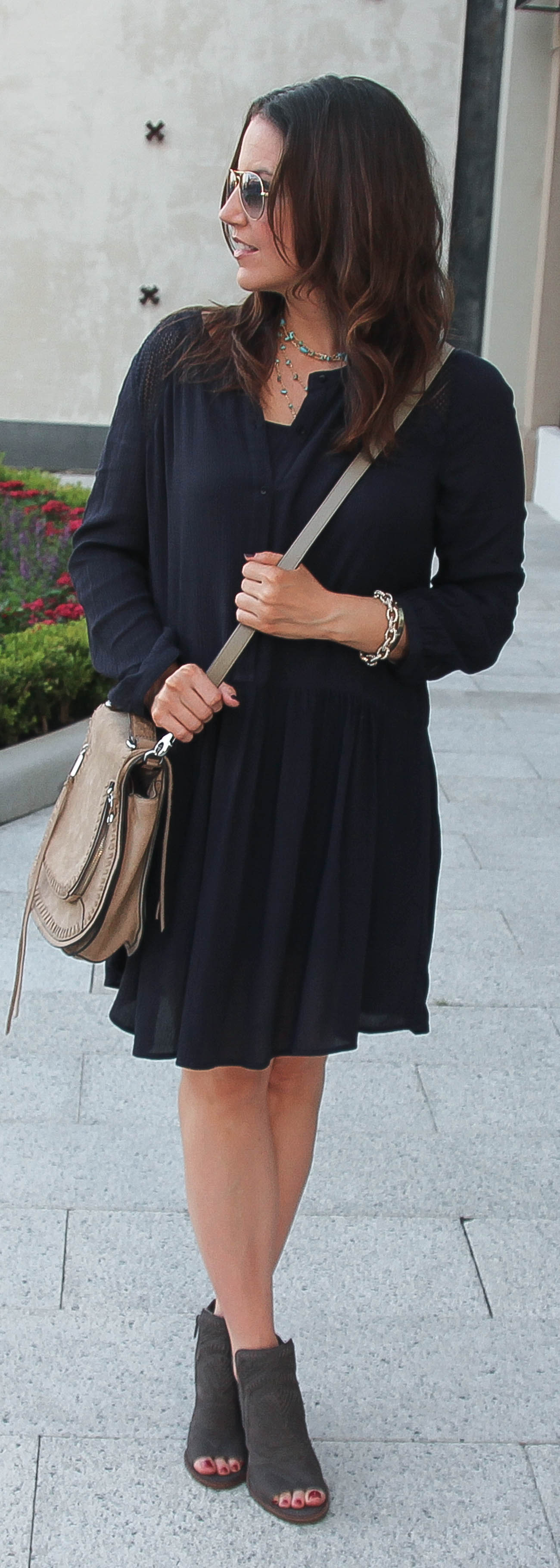 Casual Navy Dress + Peep Toe Booties - Lady in VioletLady in Violet navy peep toe booties