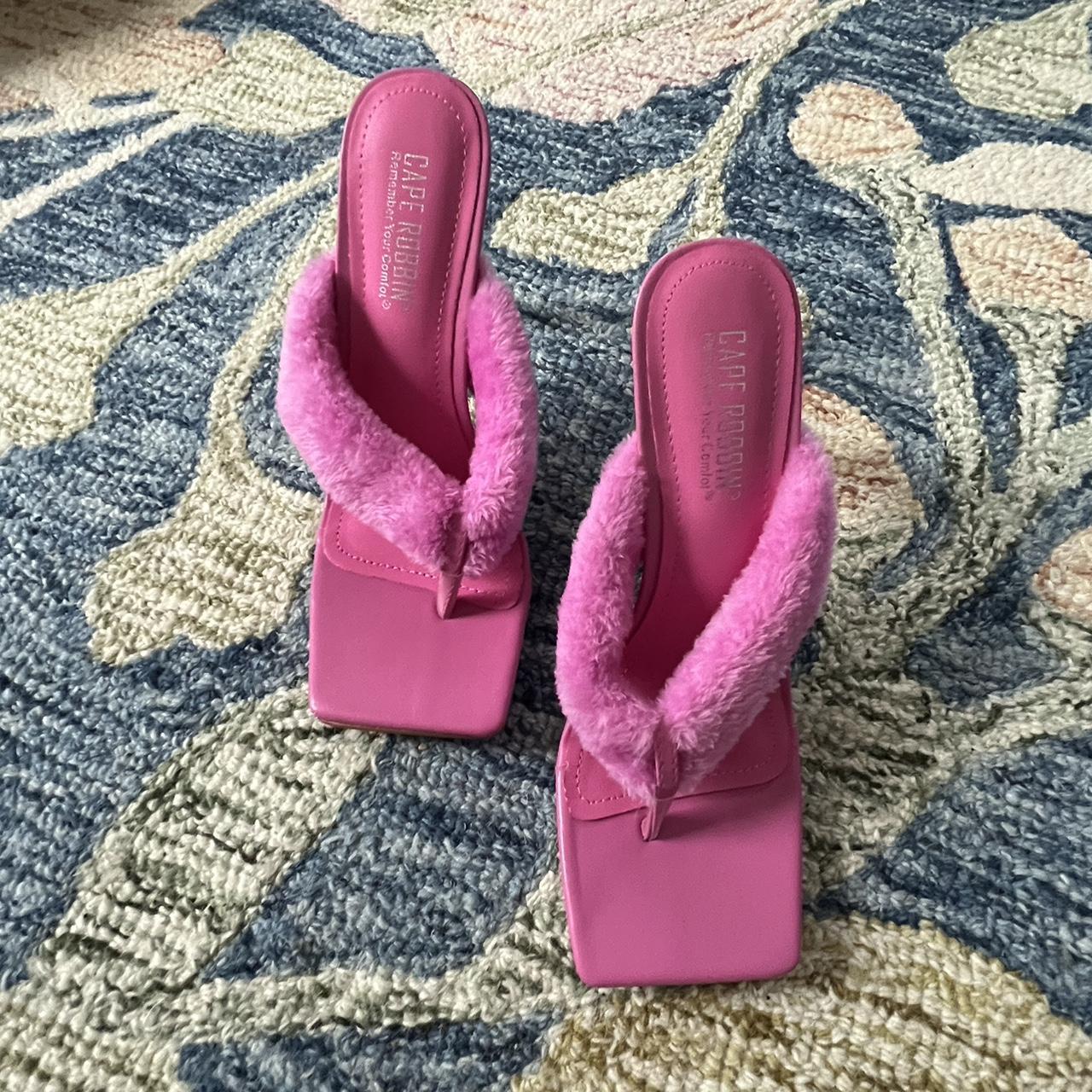 Hot pink fuzzy thong pumps Clear acrylic 4â heels - Depop pink fuzzy chunky heels