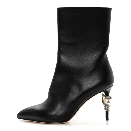 CHANEL Lambskin Pearl Snake Ankle Boots 39 Black 1261216 | FASHIONPHILE chanel snake boots