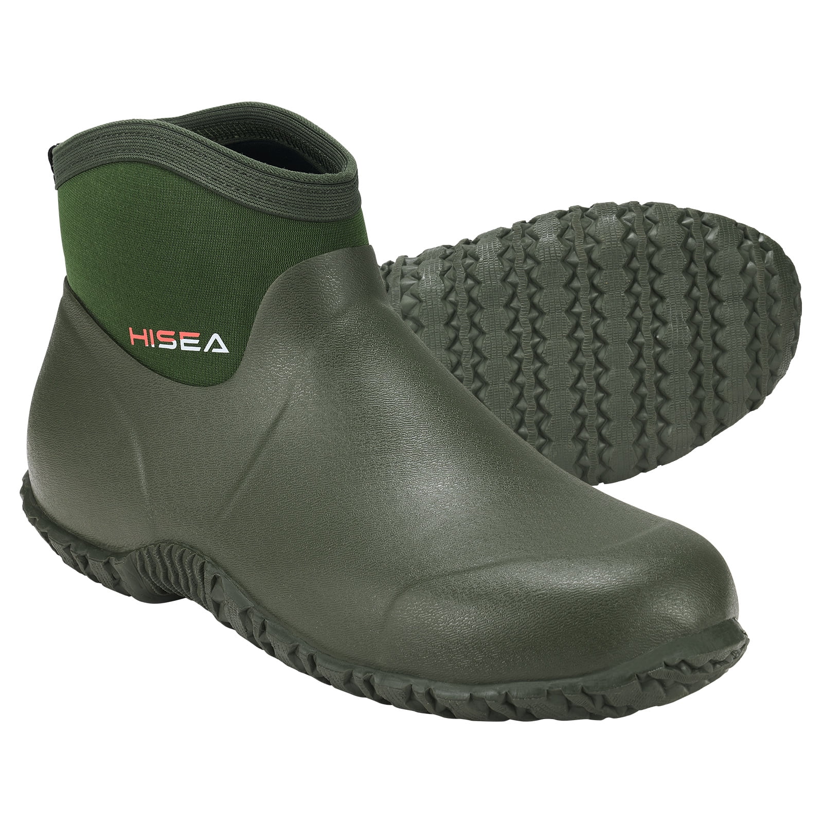 HISEA Men's Rain Boots Ankle Height Garden Shoes Waterproof Rubber Neoprene Mud Boots Durable insulated ankle rain boots