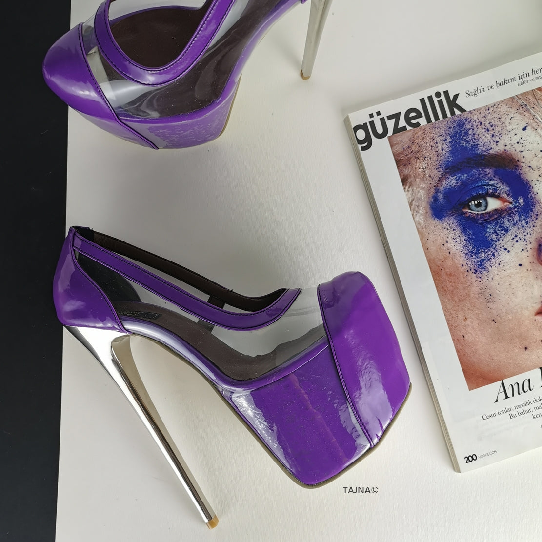 Purple Transparent Metallic Heels Peep Toe | Tajna Club metallic purple shoes