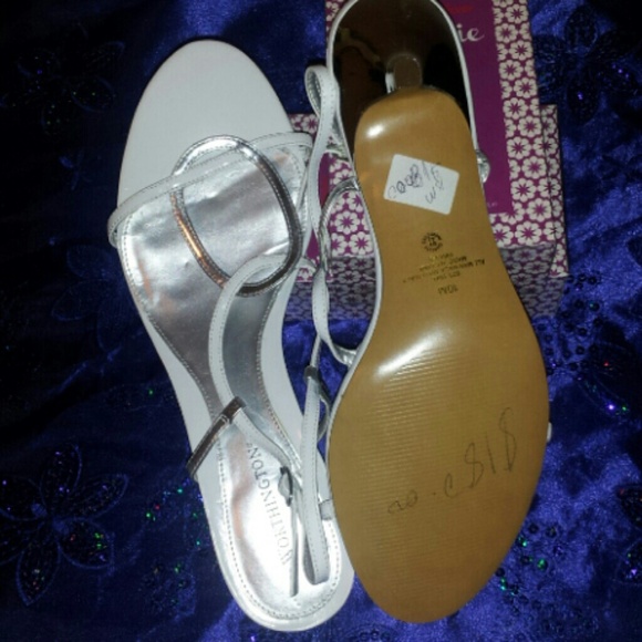 Worthington, silver 3 inch heels with ankle strap