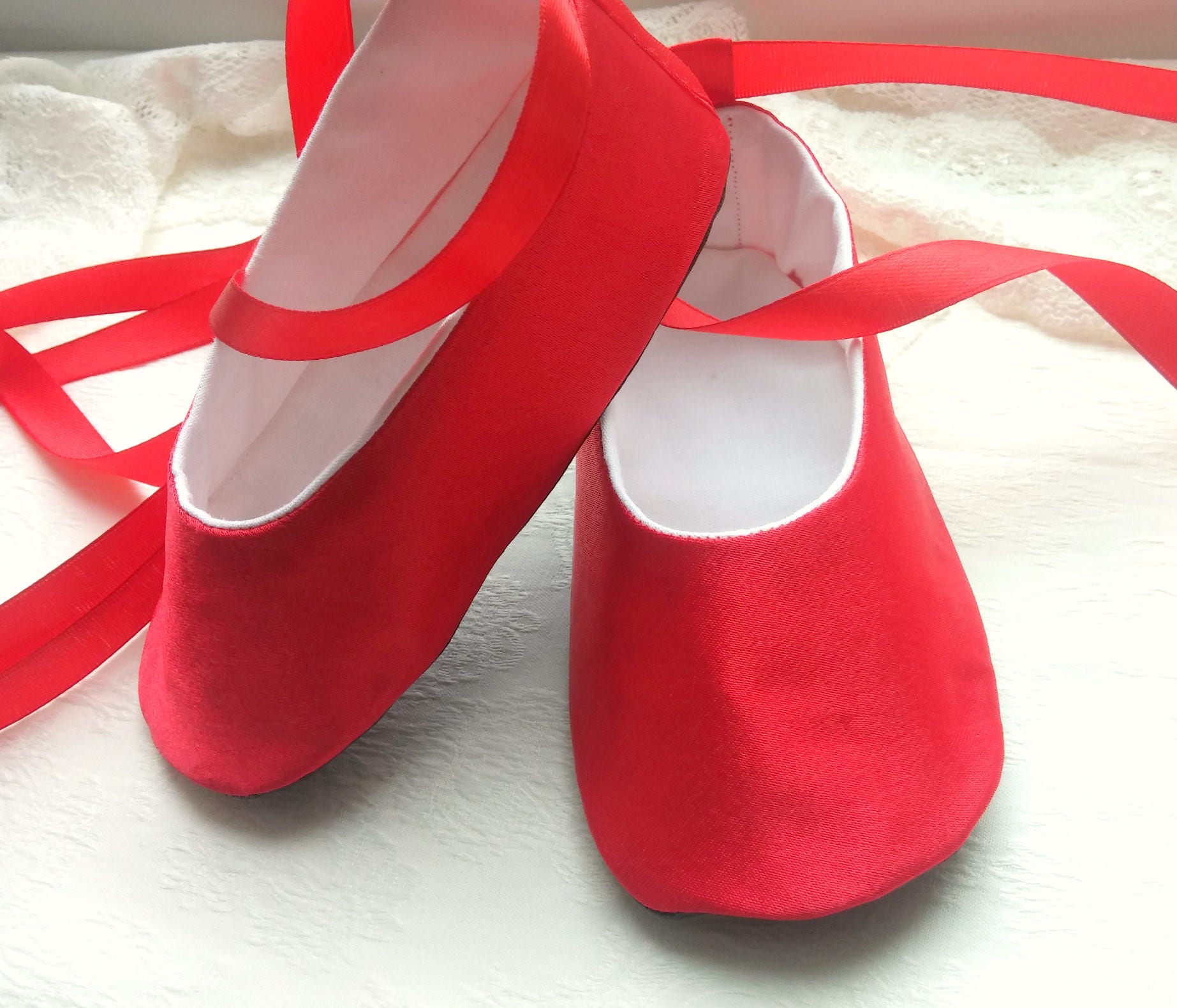 Red Satin Baby Girl Shoes, Satin Soft Sole Pre-walkers, Ballerina Shoes, Wedding Blessing infant girl red shoes