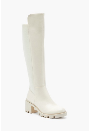 Ayden Chunky Block Heeled Boot in Bone - Get great deals at JustFab ayden chunky block heel boot