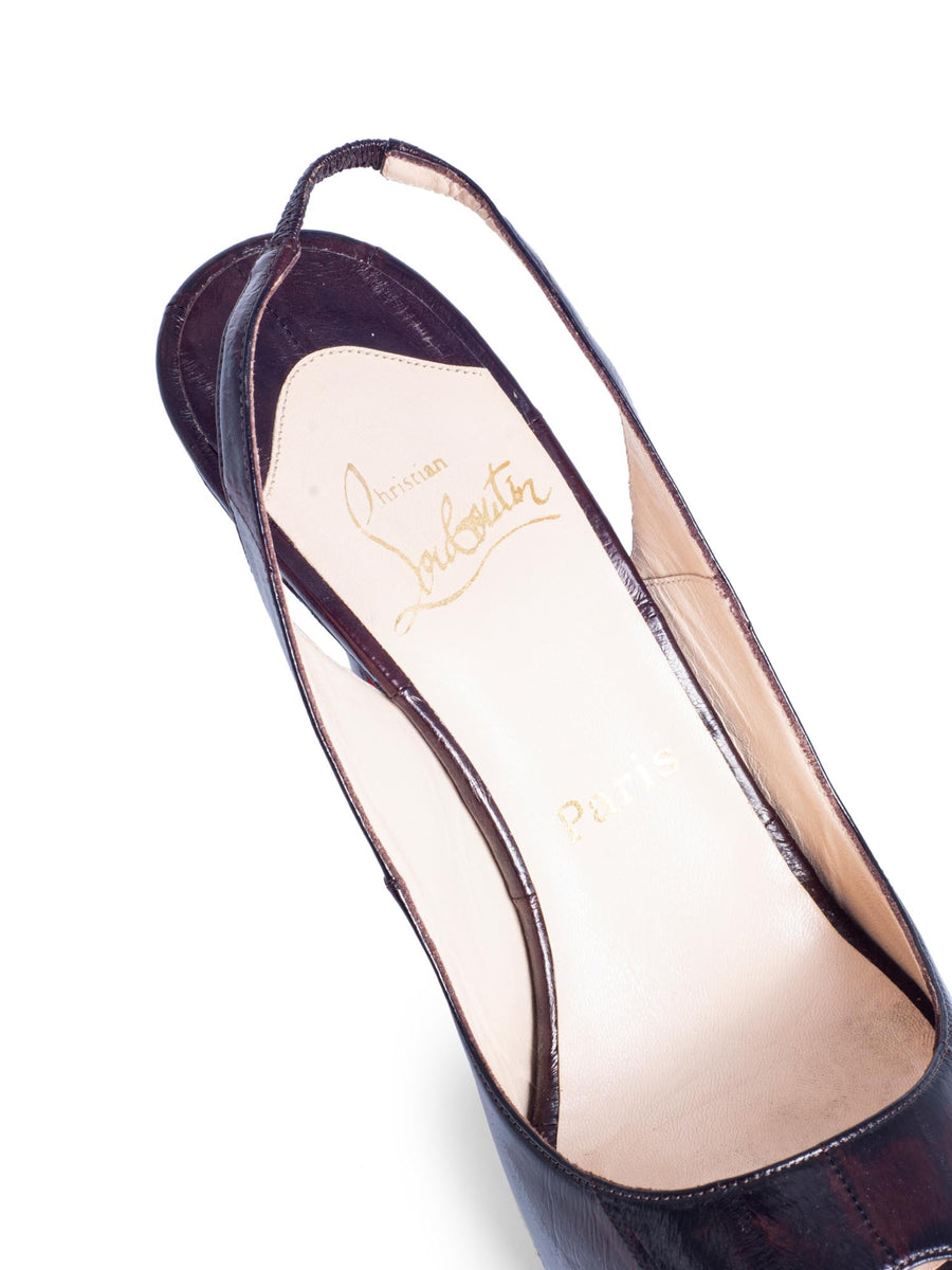 Christian Louboutin Snakeskin Open Toe Sling Back Heels Brown snakeskin closed toe heels