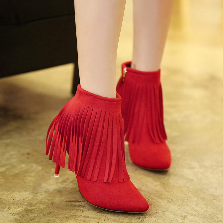 Tassels Suede Stiletto Heel Pointed Toe Zipper Ankle Boots on Luulla stiletto heel ankle boots
