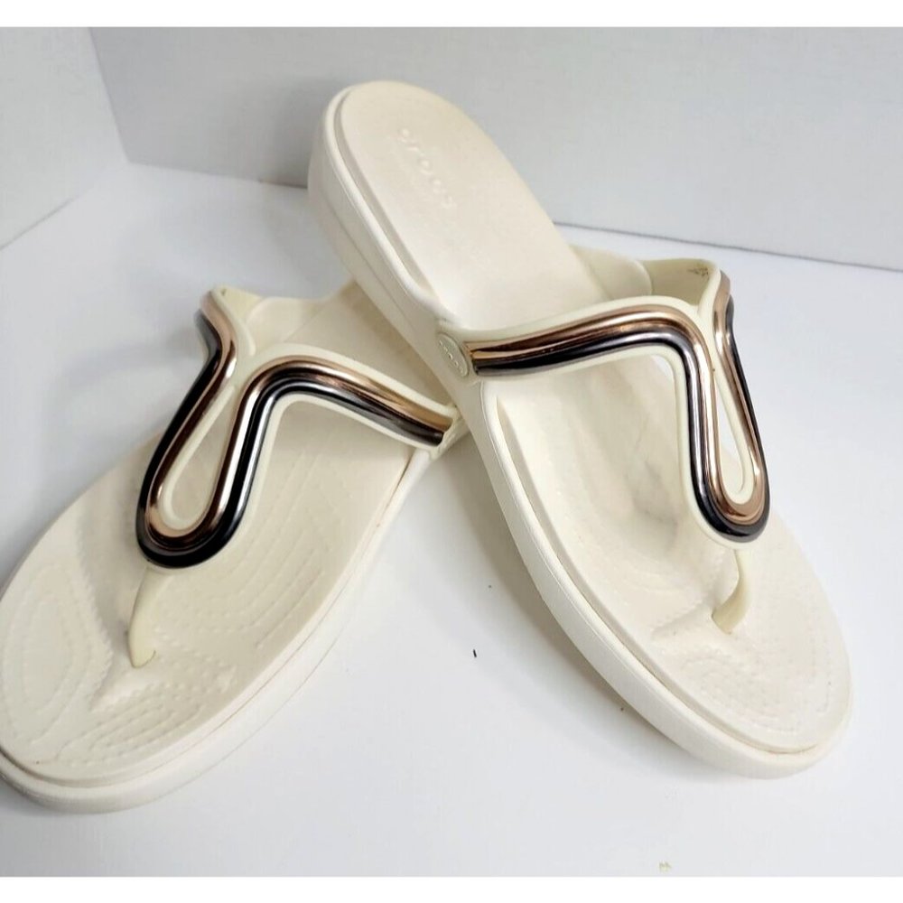 Crocs Sanrah Metal Block Flat Thong Sandal Size 11 W - Gem sanrah metal block crocs
