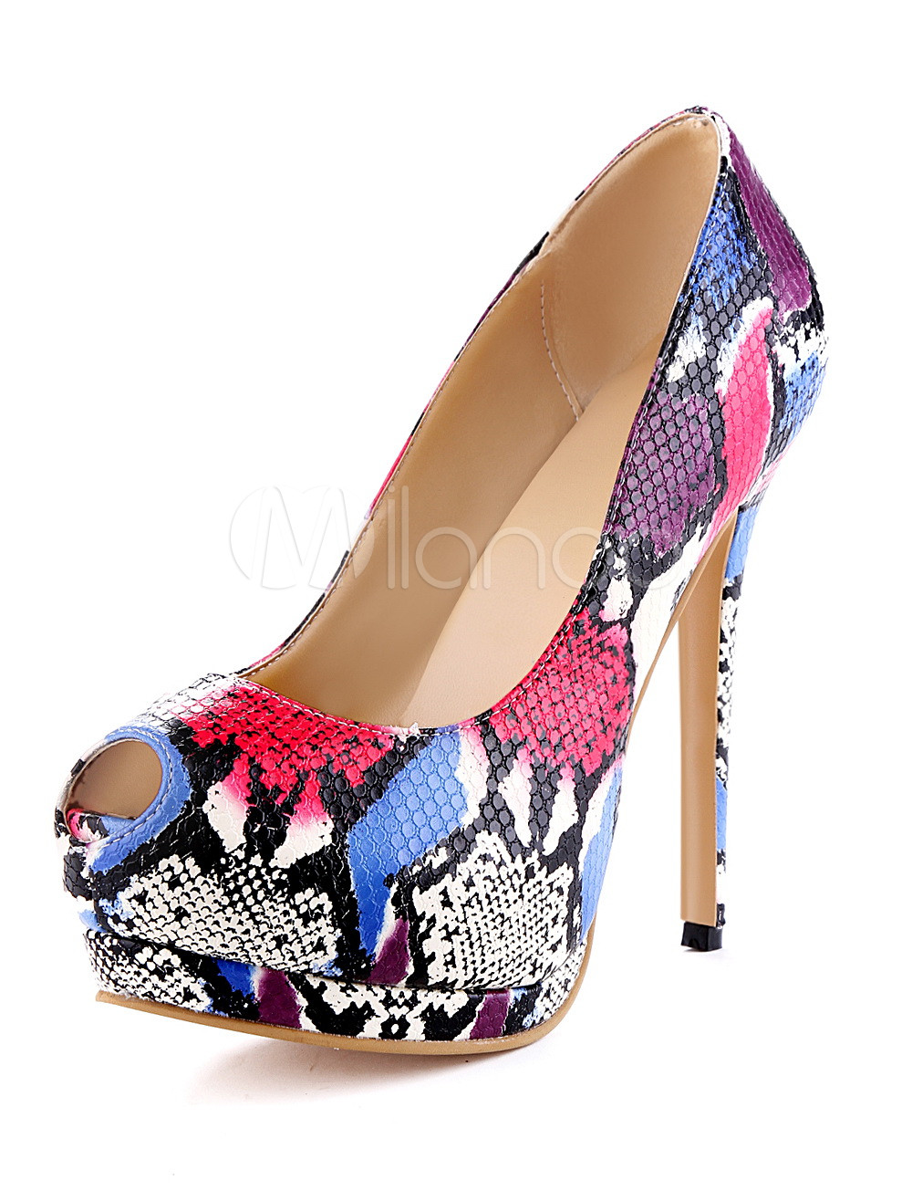 Multi Color Faux Leather Peep Toe Shoes - Milanoo.com multi colour shoes price