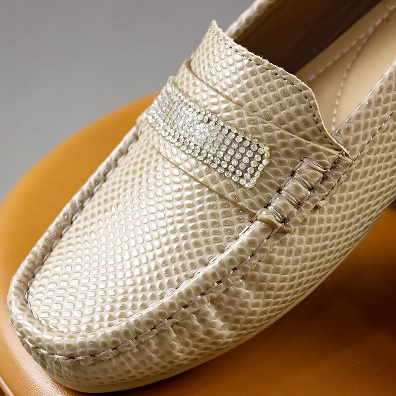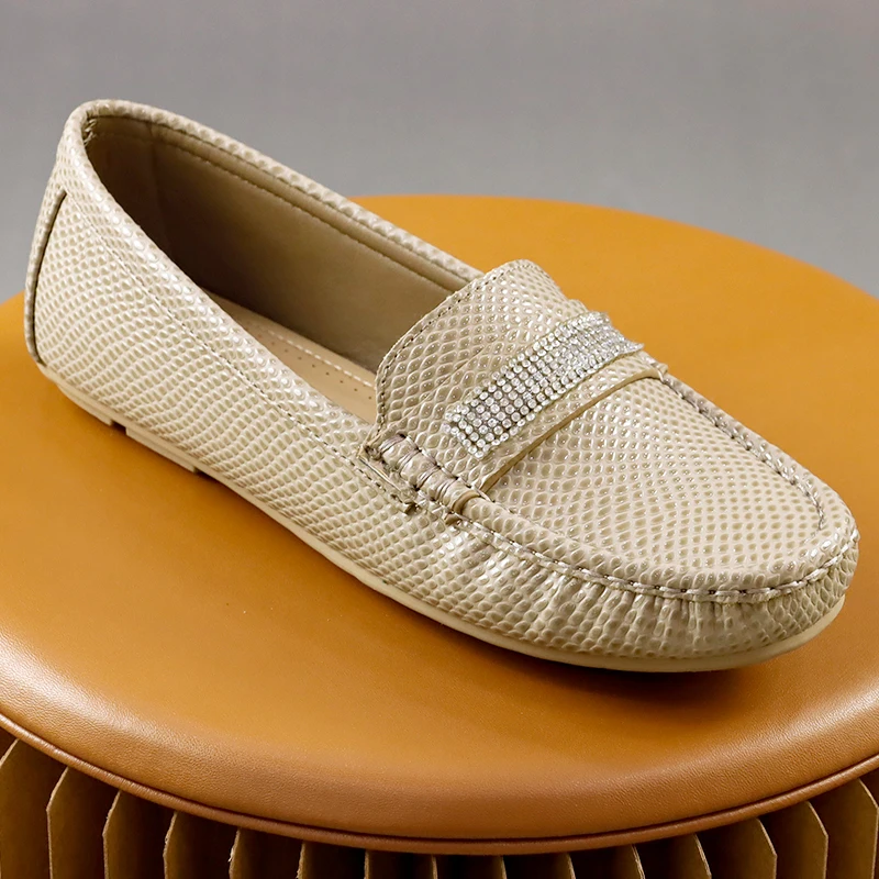Ladies Rhinestone Moccasin Shoes Snake Scale Print Softsole Anti-slip Loafers Women Shoes moccasin casual shoes for womens