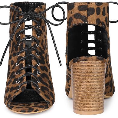 Lace Up Peep Toe Slingback Heels Chunky Heel Ankle Boots for Women lace up peep toe chunky heels