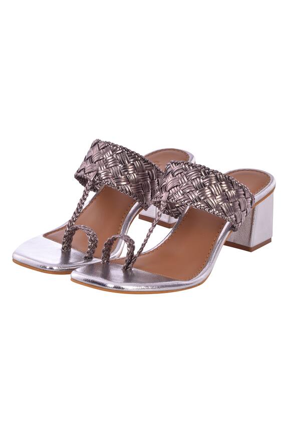 Buy Sole House Silver Pu Leather Woven Kolhapuri Heels Online | Aza Fashions kolhapuri heels online