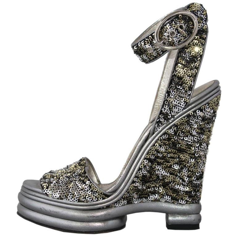 Dolce and Gabbana Silver Sequins Sandal 39 For Sale at 1stdibs dolce gabbana silver shoes