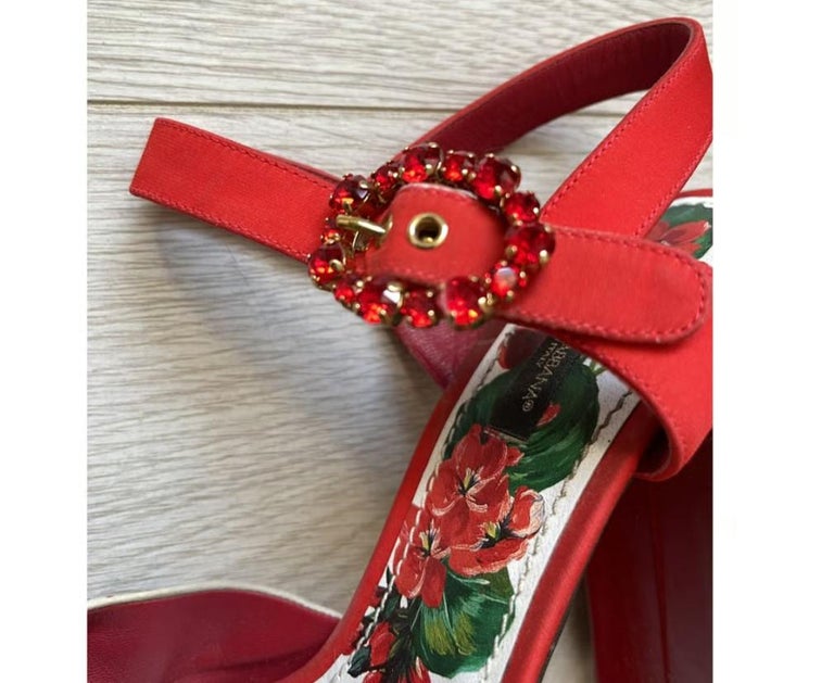 Dolce and Gabbana Red Leather Floral Pumps Heels Wedge Sandals Shoes DG Crystals For Sale at 1stDibs dolce gabbana diamond shoes red
