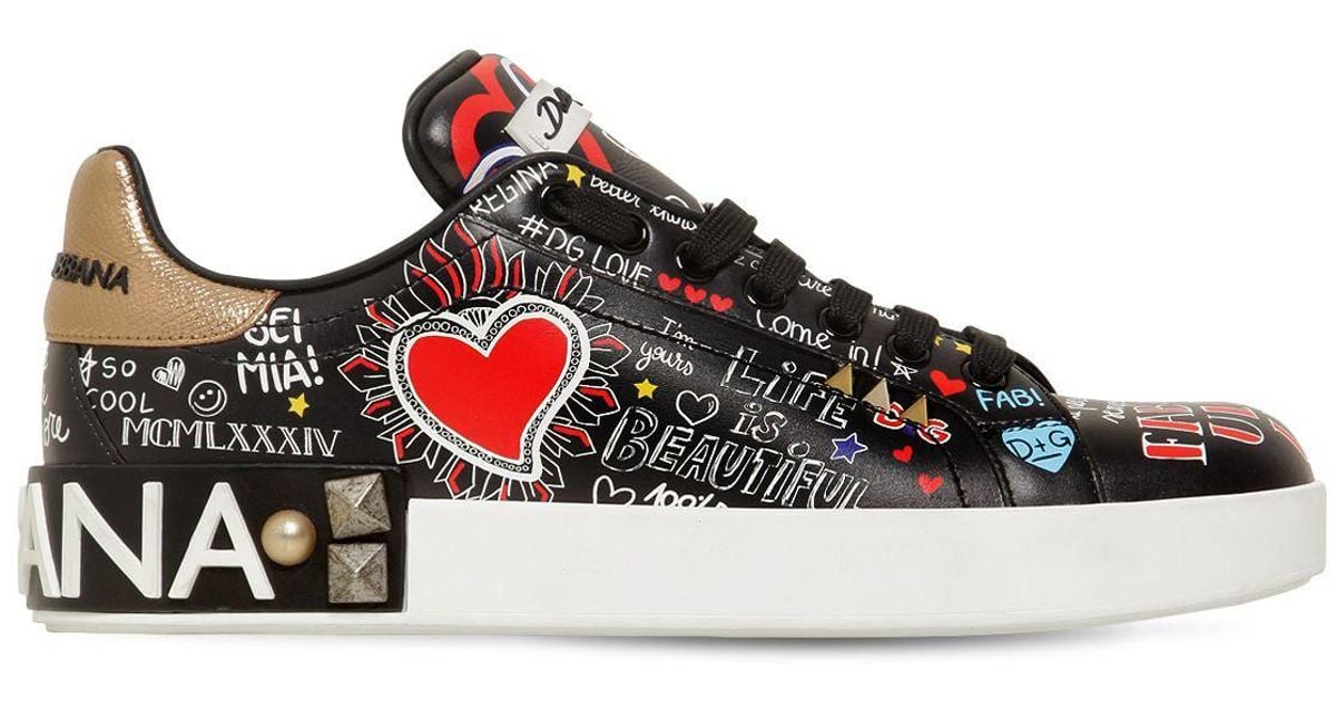 Dolce & Gabbana 20mm Portofino Graffiti Leather Sneakers in Black | Lyst Canada dolce gabbana portofino graffiti sneakers