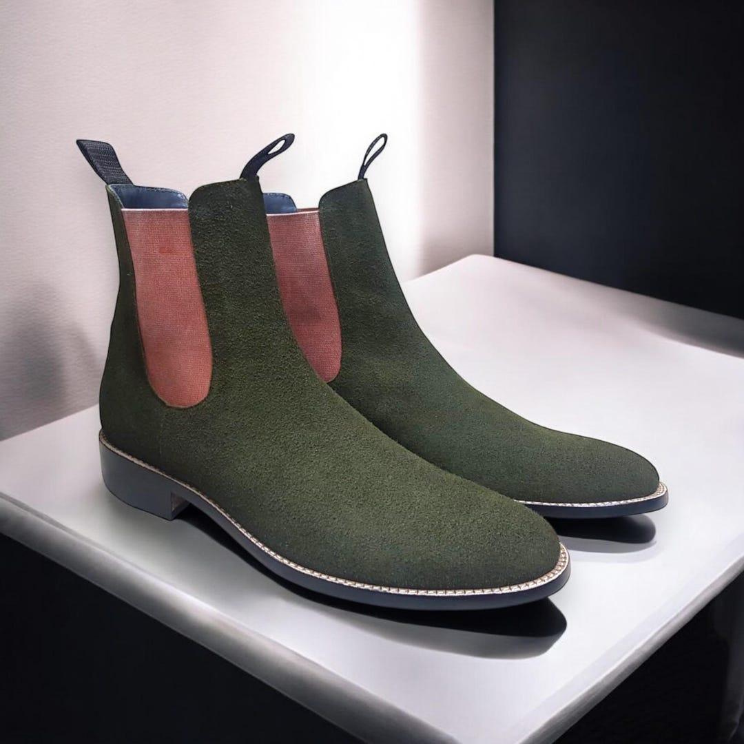 Handmade Olive Green Chelsea Boots in Premium Suede Sleek and Stylish Design for the Modern Man olive green chelsea boots