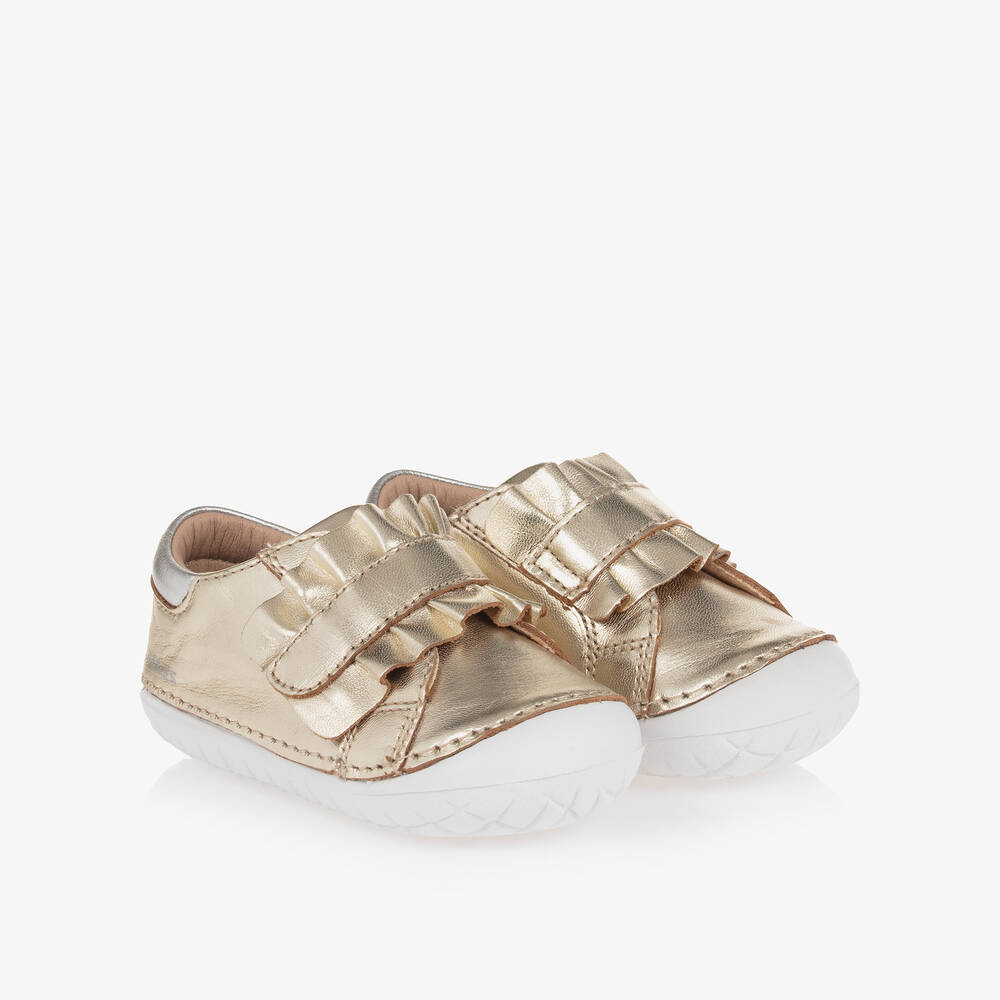 Old Soles - Girls Gold Leather First Walker Shoes | Childrensalon Outlet first walker shoes girls