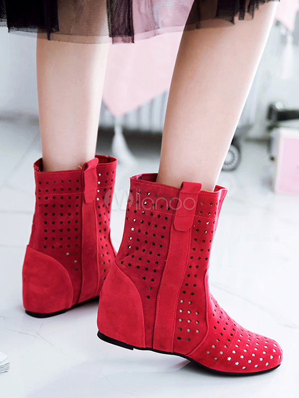 Red Suede Boots Women Shoes Round Toe Cut Out Ankle Boots - Milanoo.com red suede ankle boots ladies