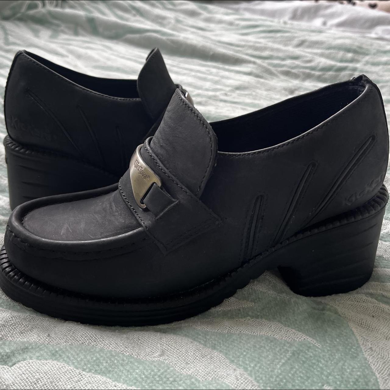 Kickers Women's Black Loafers | Depop kickers heeled loafers