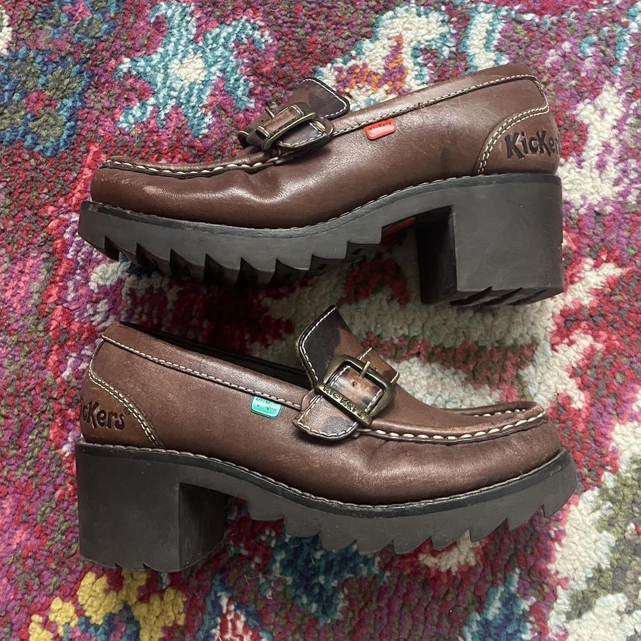 vintage kickers heeled loafers brown leather with - Depop kickers heeled loafers