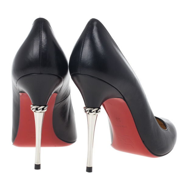 Christian Louboutin Chain Detail Metal Heel Pump Black Leather EU 41 UK 8 Steel ref.1006324