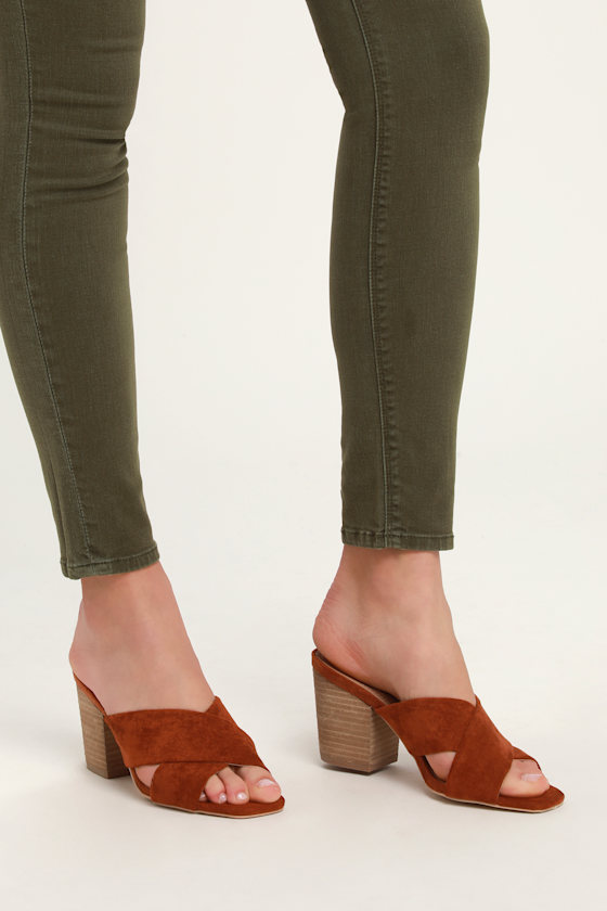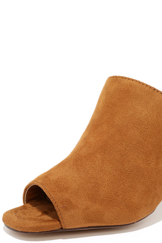 Cute Camel Mules - Peep-Toe Mules - Block Heel Mules - Lulus suede peep toe mules