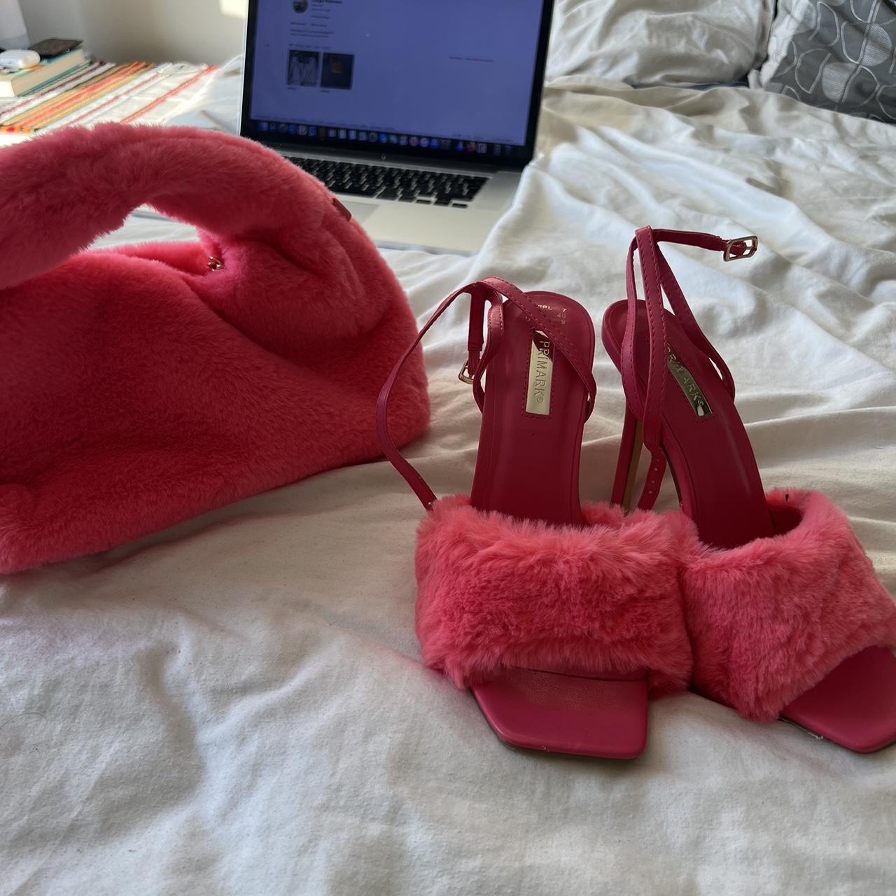 Fluffy pink primark heels + bag (heels size 6); bag - Depop primark clear heels
