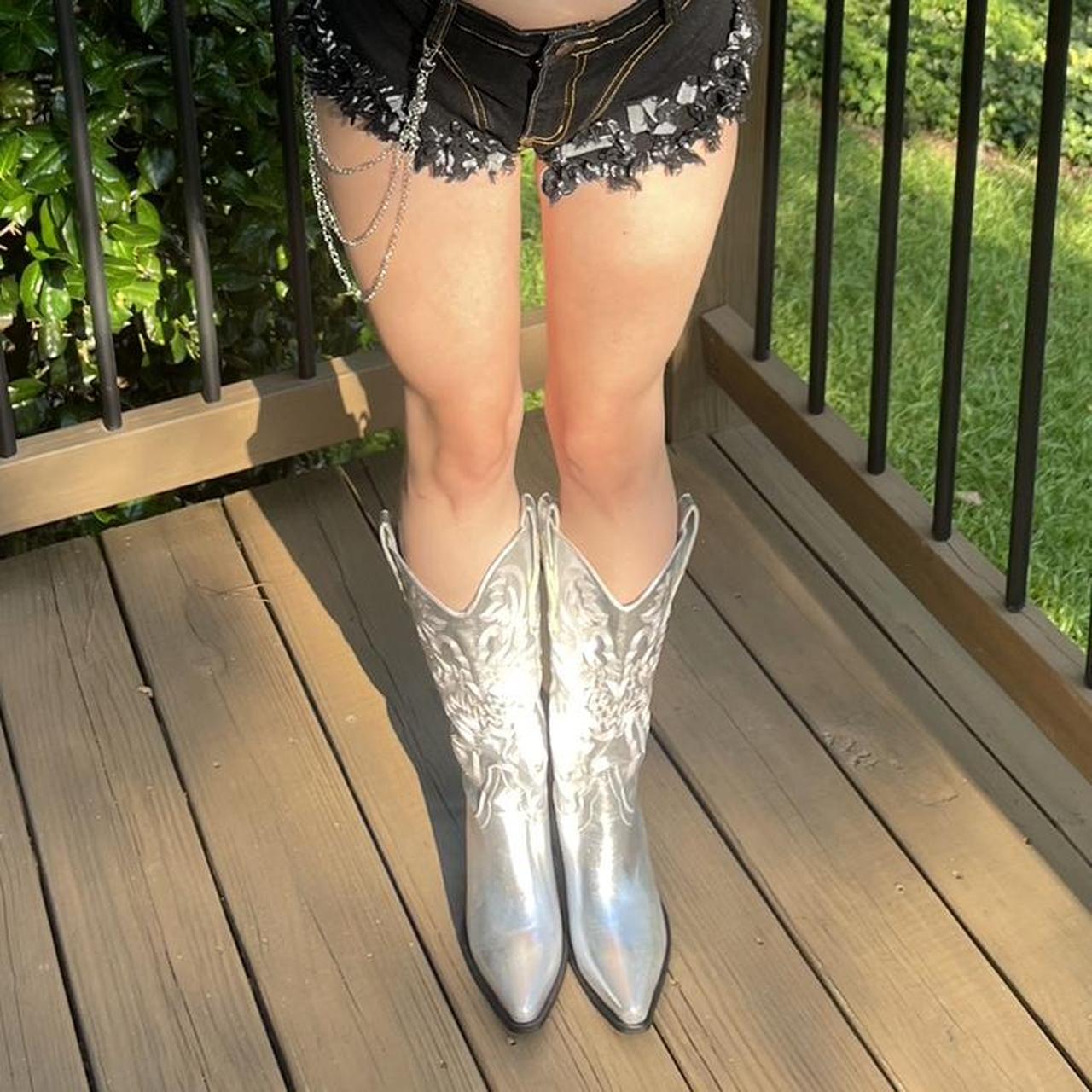 silver/ holographic cowboy boots ð¤ 𪩠worn once for - Depop