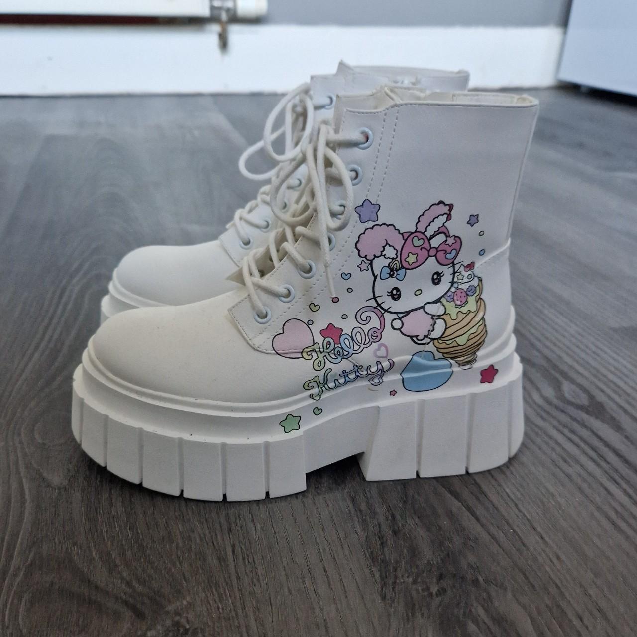 bershka x sanrio white combat boots, brand new, only - Depop