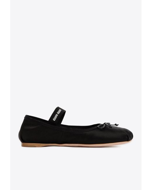 Miu Miu Logo Ballet Flats in Black | Lyst miu miu black flats
