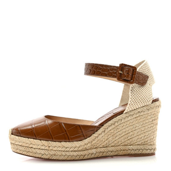 CHRISTIAN LOUBOUTIN Calfskin Crocodile Embossed Amelia 90 Espadrille Wedges 39 Brown 1411391 cadrilla louboutin