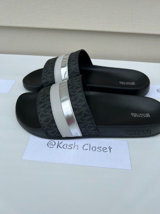 Michael Kors Michael Kors Brandy Slide Metallic Striped Sandal Black Mul | Grailed michael kors bryn slide