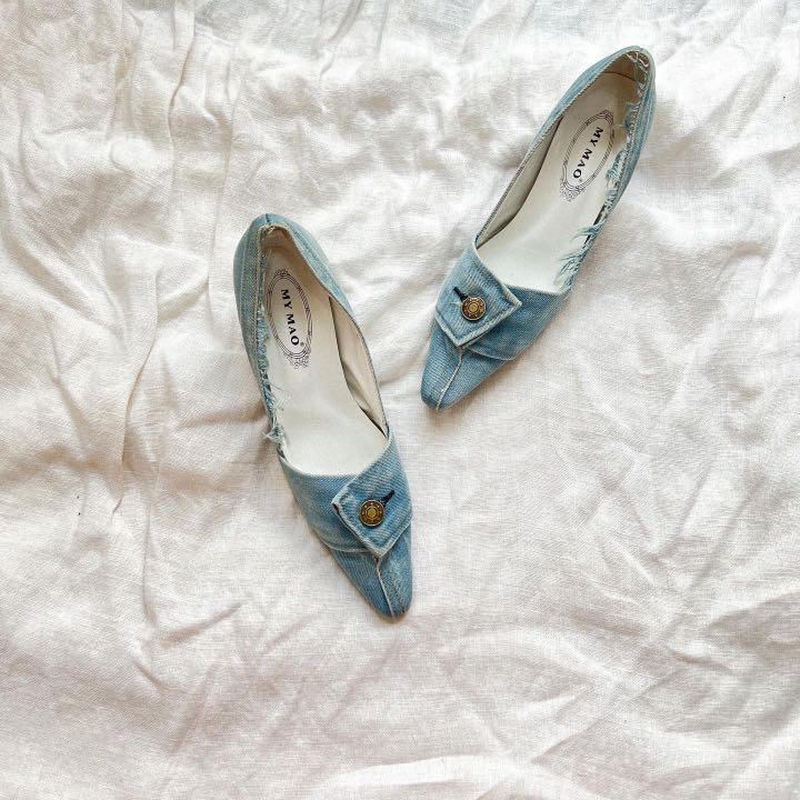 Rare denim kitten heels, Women's Fashion, Footwear, Heels on Carousell denim kitten heels
