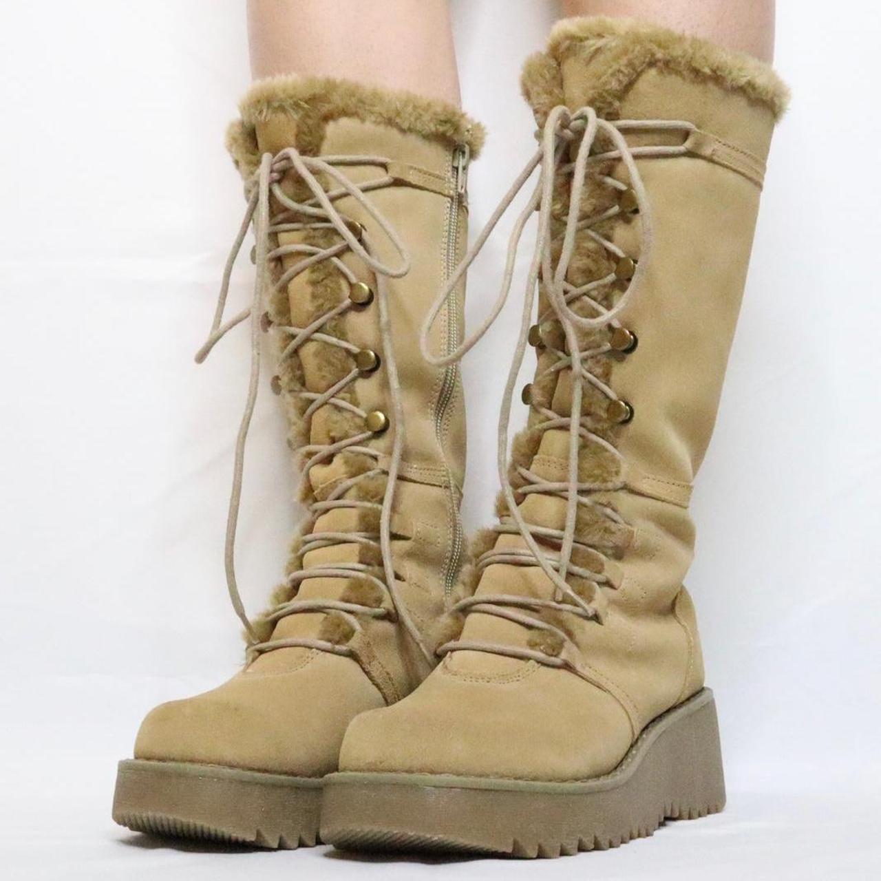 Tan Platform Lace Up Boots Details: Vintage from - Depop platform boots tan