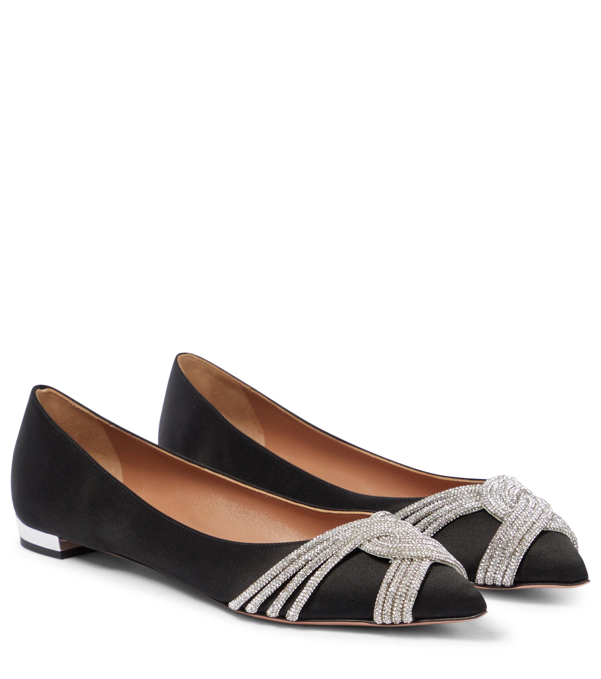 Aquazzura Gatsby Embellished Satin Ballet Flats in Brown | Lyst flats in amazon
