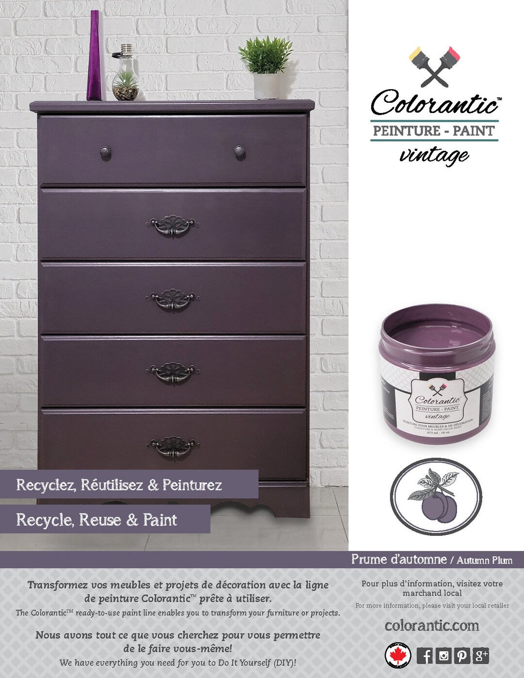 AUTUMN PLUM Chalk Paint Deep Eggplant Purple Color Perfect for Arts, Decoration, Furniture plum chalk color