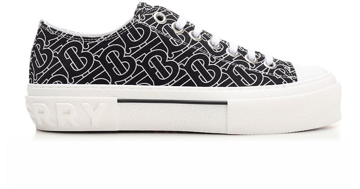 Burberry Cotton White/black Sneakers With Monogram - Lyst burberry suede detail monogram stripe sneakers