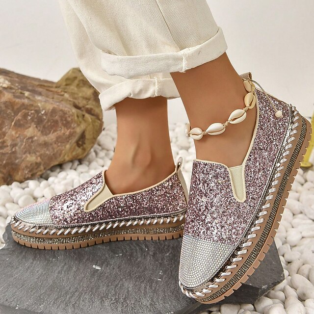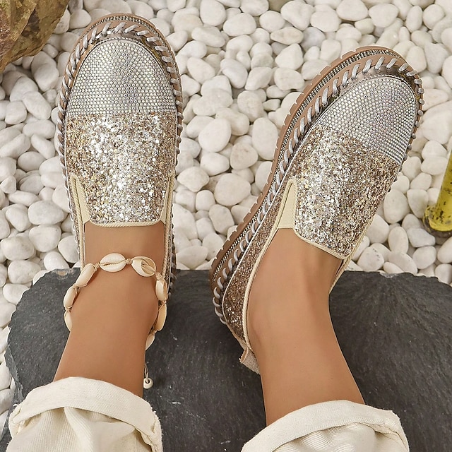 Women's Glitter Slip-On Loafers â Sparkly Rhinestone Embellished Platform Shoes for Casual Wear splasher shoes for ladies